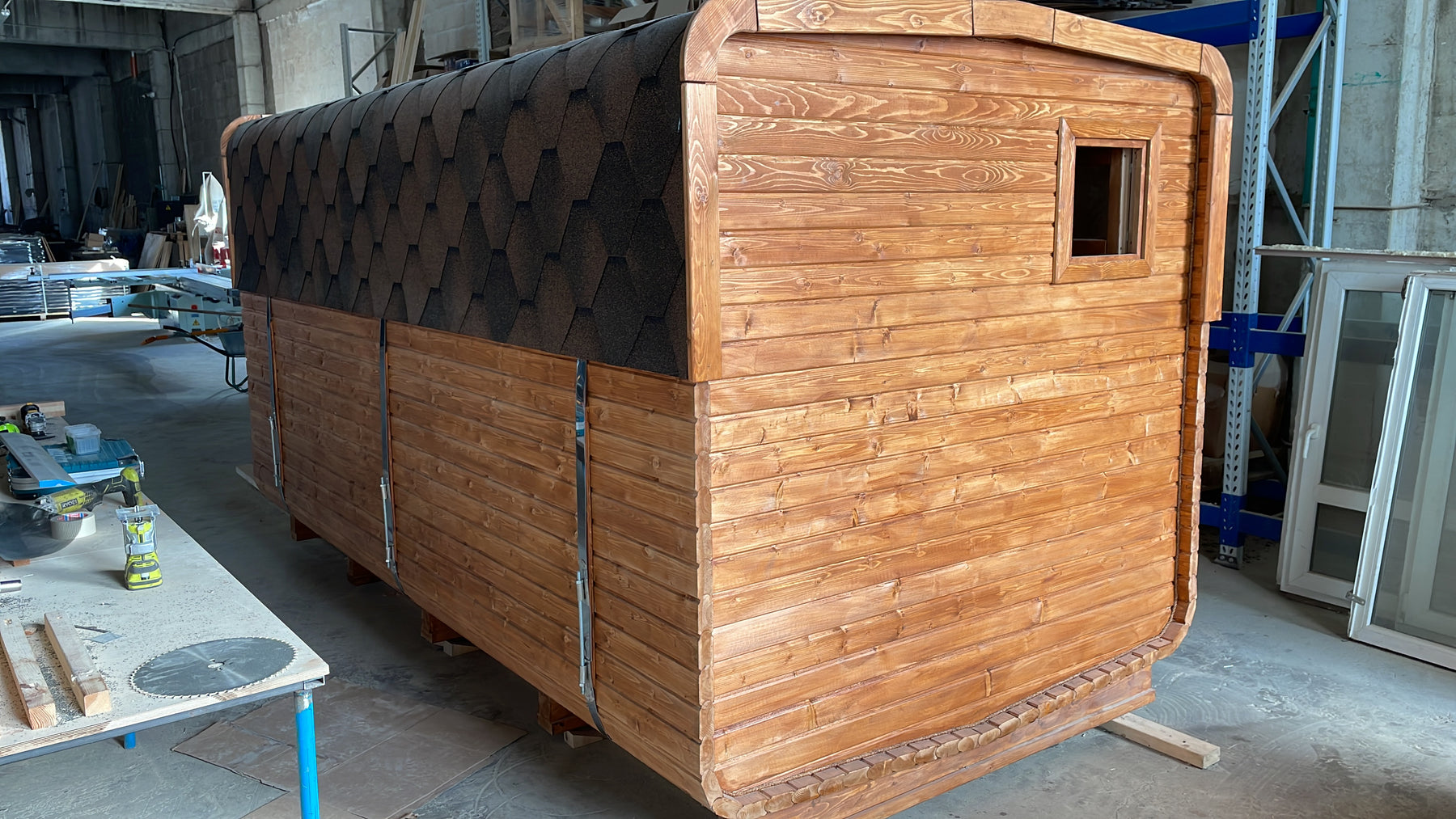 DIY Thermo Barrel pirts 300*225 cm, 4-6 pers. ar ģērbtuvi